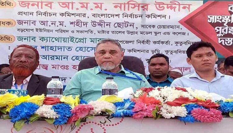 শনিবার (২২ ফেব্রুয়ারি) দুপুরে ব্যক্তিগত সফরে কক্সবাজারের কুতুবদিয়ায় নিজ গ্রামে বাবা-মার নামে প্রতিষ্ঠিত মাস্টার তালেব উল্লাহ মডেল স্কুল অ্যান্ড কলেজ এবং হাফেজ জালাল উদ্দিন আদর্শ হাফেজিয়া মাদরাসা-এতিমখানার বার্ষিক ক্রীড়া ও পুরস্কার বিতরণ অনুষ্ঠানে প্রধান অতিথির বক্তব্যে সিইসি এ কথা বলেন।