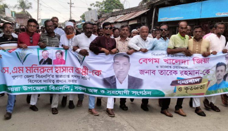 মনিরুল ইসলাম বাপ্পীকে খুলনা জেলা বিএনপির (ভারপ্রাপ্ত) সদস্য সচিব করায় কয়রায় আনন্দ মিছিল।