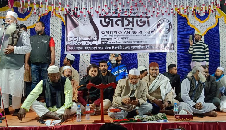 সাতবাড়িয়া ইউনিয়ন জামায়াতে ইসলামীর সভাপতি আবু সাঈদের সভাপতিত্বে অনুষ্ঠিত জনসভায় প্রধান অতিথি হিসেবে বক্তব্য রাখেন কেশবপুর উপজেলা জামায়াতে ইসলামীর আমীর ও যশোর–৬ (কেশবপুর) আসনে ১১ দলীয় ঐক্যের বাংলাদেশ জামায়াতে ইসলামীর মনোনীত সংসদ সদস্য প্রার্থী অধ্যাপক মোক্তার আলী।