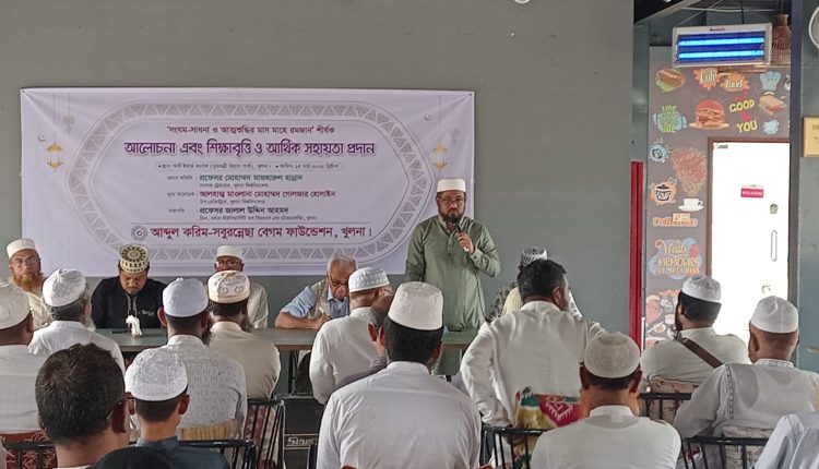 আব্দুল করিম-সবুরন্নেছা বেগম ফাউন্ডেশনের চেয়ারম্যান ও নর্দান ইউনিভার্সিটি অব বিজনেস এন্ড টেকনোলজি, খুলনার ডিন প্রফেসর জালাল উদ্দিন আহমদের সভাপ‌তি‌ত্বে ও সাংবা‌দিক আবুল হাসান হিমালয়ের সঞ্চালনায় অনুষ্ঠা‌নে মূখ‌্য আ‌লোচক ছি‌লেন খুলনা বিশ্ব‌বিদ‌্যাল‌য়ের উপ-রেজিস্ট্রার আলহাজ্ব মাওলানা মোহাম্মাদ গোলজার হোসাইন। তি‌নি দোয়াও প‌রিচালনা ক‌রেন।