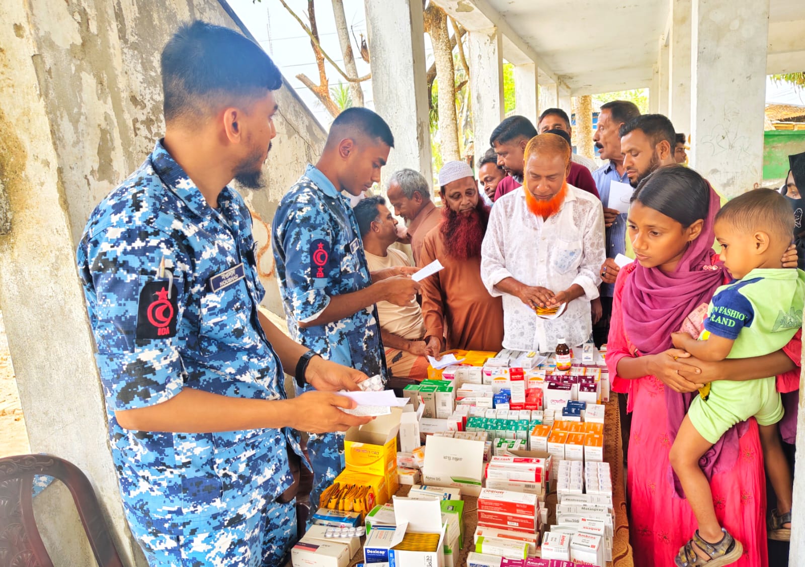 মোংলায় কোস্ট গার্ডের বিনামূল্যে চিকিৎসা সেবা ও ওষুধ বিতরণ