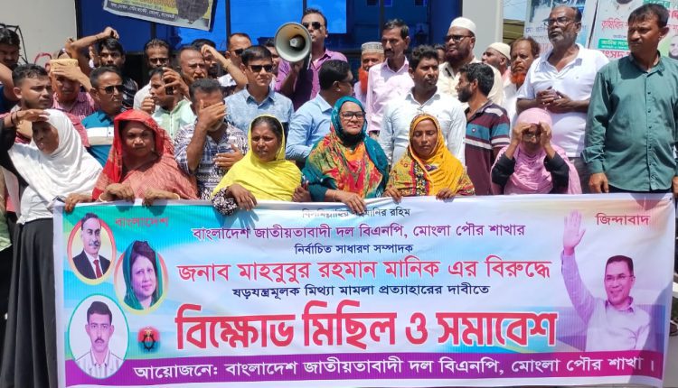 মোংলায় পৌর বিএনপির সাধারণ সম্পাদক মানিকের বিরুদ্ধে মিথ্যা মামলা দায়েরের প্রতিবাদে বিক্ষোভ ও সমাবেশ
