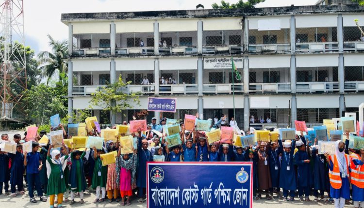 মোংলায় শিক্ষার আলো ছড়াতে কোস্ট গার্ডের শিক্ষা সামগ্রী বিতরণ