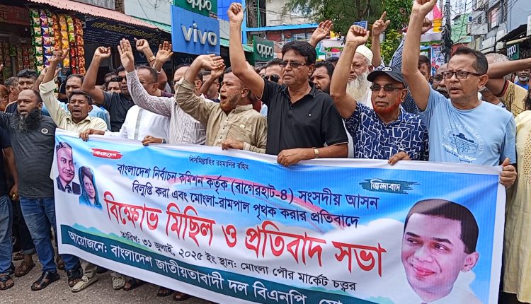 মোংলা-রামপাল সংসদীয় বাগেরহাট-৩ আসনটি পৃথক করার প্রতিবাদের বিক্ষোভ