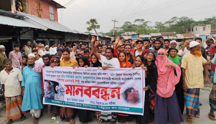 মোরেলগঞ্জে বিএনপির কর্মীকে পিটিয়ে হত্যার ঘটনায় দারোগার ফাঁসির দাবিতে মানববন্ধন