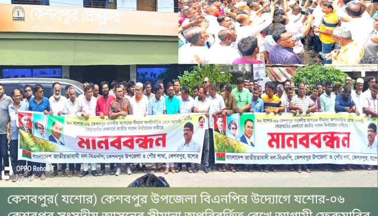 যশোর-৬ কেশবপুরের সংসদীয় আসনের সীমান অপরিবর্তিত রাখার দাবীতে মানববন্ধন
