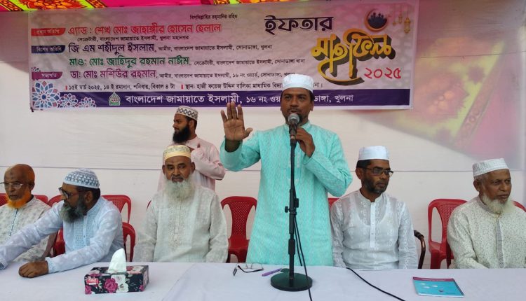বাংলাদেশ জামায়াতে ইসলামীর কেন্দ্রীয় মজলিসে শূরার সদস্য ও খুলনা মহানগরী সেক্রেটারি এডভোকেট শেখ জাহাঙ্গীর হুসাইন হেলাল বলেছেন, যারা আমাদেরকে দেশের নাগরিক মনে করত না, তারাই আজ দেশত্যাগ করেছে। শুধু দেশ ত্যাগ করেই ক্ষ্যান্ত হয়নি অন্য দেশের নাগরিকত্বও নিয়েছে। মুসলমান হয়ে অন্য ধর্মের নাম দিয়ে আধারকার্ড করেছে। যাদের দেশের প্রতি ভালোবাসা আছে, তারা কখনও দেশ ছেড়ে পালায় না। অন্য দেশের নাগরিকত্বও নেয়না । আমরা যাবো না কোথাও, এই দেশ আমাদের প্রিয় জন্মভূমি। এই দেশ ছেড়ে আমাদের পালানোর কোনো প্রয়োজন নেই। এই দেশ ছেড়ে তারাই পালাবে যাদের দেশের প্রতি ভালোবাসা নেই। দেশে এখন যারা আছে তারা বুকে গুলি নিবে তবুও দেশ ছেড়ে পালাবে না। তিনি বলেন, রমযান হচ্ছে বদরের মাস, কদরের মাস। এ মাসে ইনসাফভিত্তিক সমাজ বিনির্মাণের শপথ নিতে হবে। নিজেদের অধিকার প্রতিষ্ঠার শপথ নিতে হবে।’ রোববার (১৬ মার্চ) খুলনা মহানগরীর সোনাডাঙ্গা থানাধীন ১৬ নং ওয়ার্ড জামায়াতে ইসলামীর উদ্যোগে অনুষ্ঠিত ইফতার মাহফিলে প্রধান অতিথির বক্তৃতায় তিনি এ সব কথা বলেন।১৬ নং ওয়ার্ড আমীর ডা. মো. মশিউর রহমানের সভাপতিত্বে ও সেক্রেটারি মিজানুর রহমানের পরিচালনায় বিশেষ অতিথি ছিলেন সোনাডাঙ্গা থানা আমীর জি এম শহীদুল ইসলাম ও সেক্রেটারি মাওলানা জাহিদুর রহমান নাঈম। এতে সোনাডাঙ্গা থানা শ্রমিক কল্যাণ ফেডারেশনের সভাপতি আব্দুল ওয়াহেদ, থানা কর্মপরিষদ সদস্য আলমগীর শিকদার প্রমুখ নেতৃবৃন্দ উপস্থিত ছিলেন।প্রধান অতিথি আরও বলেন, গত সাড়ে ১৫ বছরে সংবিধান ও সাংবিধানিক প্রতিষ্ঠানগুলো, রাষ্ট্রীয় প্রতিষ্ঠানগুলোতে যে জঞ্জাল তৈরি হয়েছে। তার কতিপয় জিনিস অবশ্যই পরিষ্কার হওয়া উচিত। এজন্য সকলে আমরা একমত, এখানো কারও কোনো দ্বিমত নেই। আমরা সবাই বলছি সংস্কারের প্রয়োজন। কতটুকু প্রয়োজন সেটা নিয়ে মতপার্থক্য থাকতে পারে। কিন্তু সংস্কার যে প্রয়োজন এ ব্যাপারে কোনো মতপার্থক্য নেই। আমরা বর্তমান সরকারকে যৌক্তিক সময় দিতে চাই। যৌক্তিক সময় মানে অযৌক্তিক সময় কাটানো নয়। আবার যৌক্তিক সময় মানে চাপ দিয়ে তাড়াহুড়োও নয়। যৌক্তিক সময় হচ্ছে এ কাজের জন্য, মৌলিক সংস্কারগুলোর জন্য যে সময়টুকু প্রয়োজন আমরা সরকারকে সেটুকু সময় দেওয়ার পক্ষে।