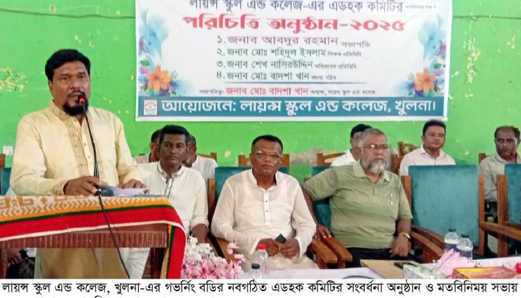 খুলনার ঐতিহ্যবাহী লায়ন্স স্কুল এন্ড কলেজের গভর্নিং বডির নবগঠিত এডহক কমিটির সংবর্ধনা অনুষ্ঠান ও মতবিনিময় সভা গতকাল মঙ্গলবার বিকাল ৩টায় স্কুলের হলরুমে অনুষ্ঠিত হয়।