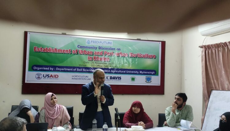 সোমবার ২৬ নভেম্বর) সকালে ইউএসএআইডি এর অর্থায়নে ফিড দ্যা ফিউচার প্রোগ্রাম হর্টিকালচার ইনোভেশন ল্যাব ইউনিভার্সিটি অব ক্যালিফোর্নিয়া ইউসিড্যাভিস এর তত্বাবধানে শহরে ছাদ বাগান বিষয়ক মত বিনিময় সভায় বক্তারা এসব কথা বলেন। খুলনা কৃষি সম্প্রসারণ অধিদপ্তর এর কার্যালয়ে এ মতবিনিময় অনুষ্ঠিত হয়।