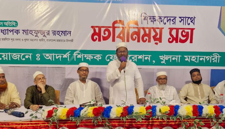 তিনি বলেন, বাংলাদেশ জামায়াতে ইসলামী একটি কল্যাণধর্মী ইসলামিক রাষ্ট্র প্রতিষ্ঠায় চেষ্টা করে যাচ্ছে। এক্ষেত্রে শিক্ষক সমাজের অগ্রণী ভূমিকা পালন করতে হবে। আগামীতে জামায়াত রাষ্ট্র পরিচালনার দায়িত্ব পেলে শিক্ষক সমাজের দীর্ঘদিনের দাবী দাওয়া পূরণের সর্বাত্মক চেষ্টা করবে ইনশাআল্লাহ। রোববার (৩ জুলাই) বিকেলে নগরীর আল ফারুক সোসাইটি মিলনায়তনে আদর্শ শিক্ষক ফেডারেশন খুলনা মহানগরীর উদ্যোগে শিক্ষকদের সাথে মতবিনিময়কালে প্রধান অতিথির বক্তৃতায় তিনি এ সব কথা বলেন।