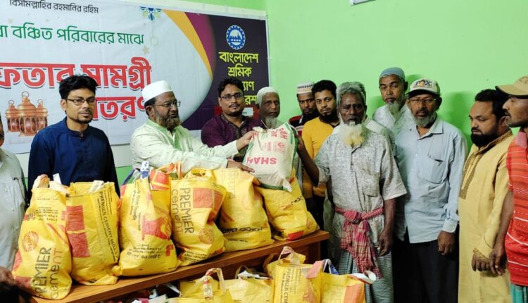 সোমবার (৩ মার্চ) সকাল ১০ টায় স্থানীয় কার্যালয়ে খুলনা মহানগরীর দৌলতপুর থানা শ্রমিক কল্যাণ ফেডারেশনের উদ্যোগে সুবিধাবঞ্চিত শ্রমিক পরিবারের মাঝে ইফতার সামগ্রী বিতরণকালে প্রধান অতিথির বক্তৃতায় তিনি এ সব কথা বলেন।