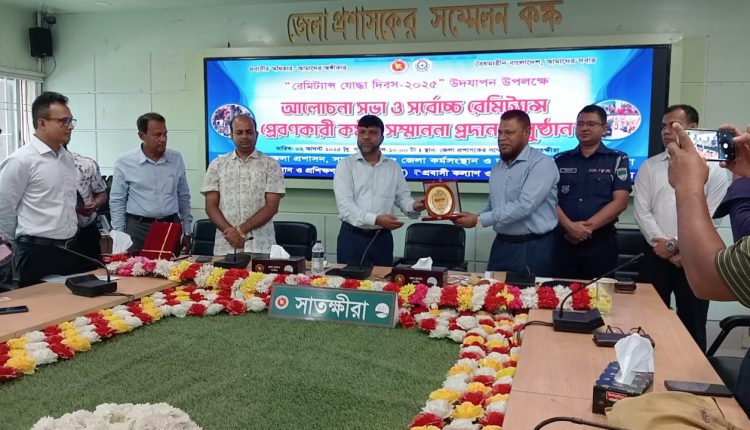 সাতক্ষীরায় সর্বোচ্চ রেমিট্যান্স প্রেরণকারীদের সম্মাননা প্রদান