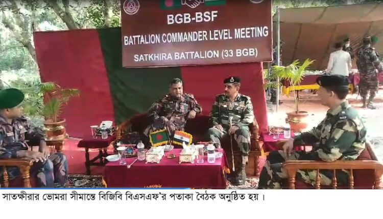 সাতক্ষীরা প্রতিনিধি: সাতক্ষীরার ভোমরা সীমান্তে বিজিবি-বিএসএফের ব্যাটালিয়ন পর্যায়ে পতাকা বৈঠক অনুষ্ঠিত হয়েছে। দুই বাংলাদেশির জমি চাষে বিএসএফ বাঁধা দেওয়ার ঘটনায় রোববার দুপুরে এ পতাকা বৈঠক অনুষ্ঠিত হয়। বৈঠকে আগামী ২০ জানুয়ারি উভয় দেশের সার্ভে বিভাগ কর্তৃক যৌথ পরিমাপের পর বিষয়টির চুড়ান্ত নিস্পত্তি হবে বলে জানানো হয়।