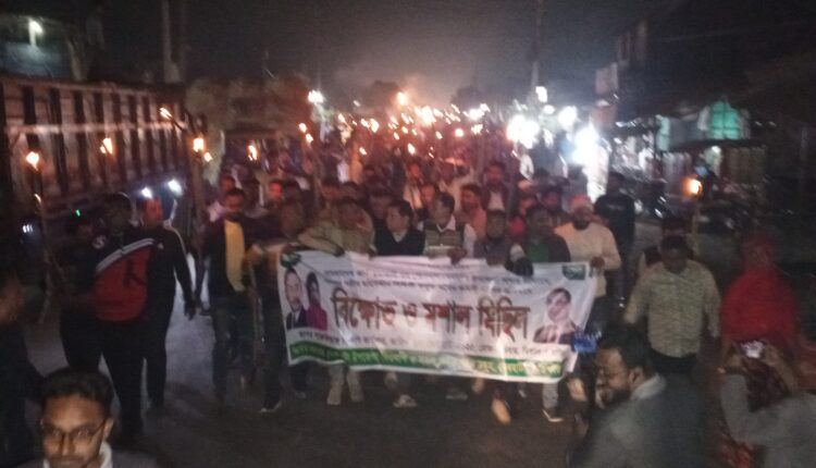 সাতক্ষীরা দেবহাটায় বিএনপির কমিটি বাতিলের দাবিতে মশাল মিছিল ও সমাবেশ