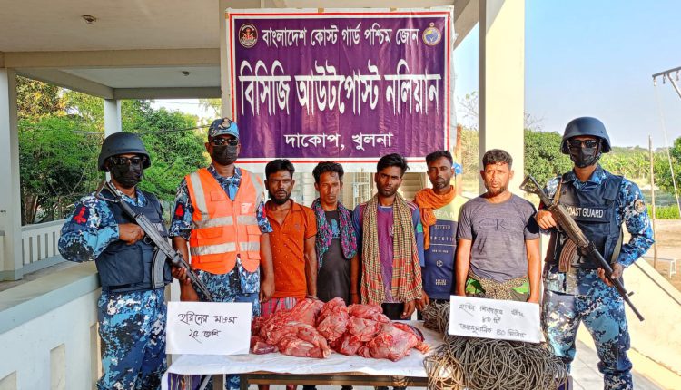 সুন্দরবনের শিবসা নদীতে ২৫ কেজি হরিণের মাংস সহ ০৫ জন হরিণ শিকারীকে আটক