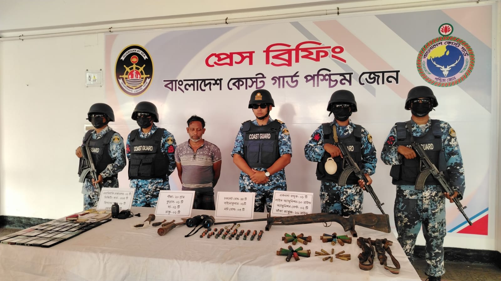 সুন্দরবনে কোস্ট গার্ডের পৃথক অভিযানে অস্ত্র-গুলিসহ এক ডাকাত ও এক অস্ত্র ব্যবসায়ী আটক
