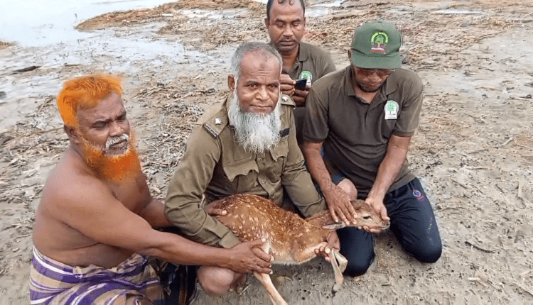 সুন্দরবনে ঘূর্ণিঝড় ‘শক্তি’র প্রভাবে ভেসে যাচ্ছিল হরিণ