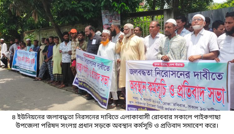 ৪ ইউনিয়নের জলাবদ্ধতা নিরসনের দাবিতে এলাকাবাসীর অবস্থান কর্মসূচি